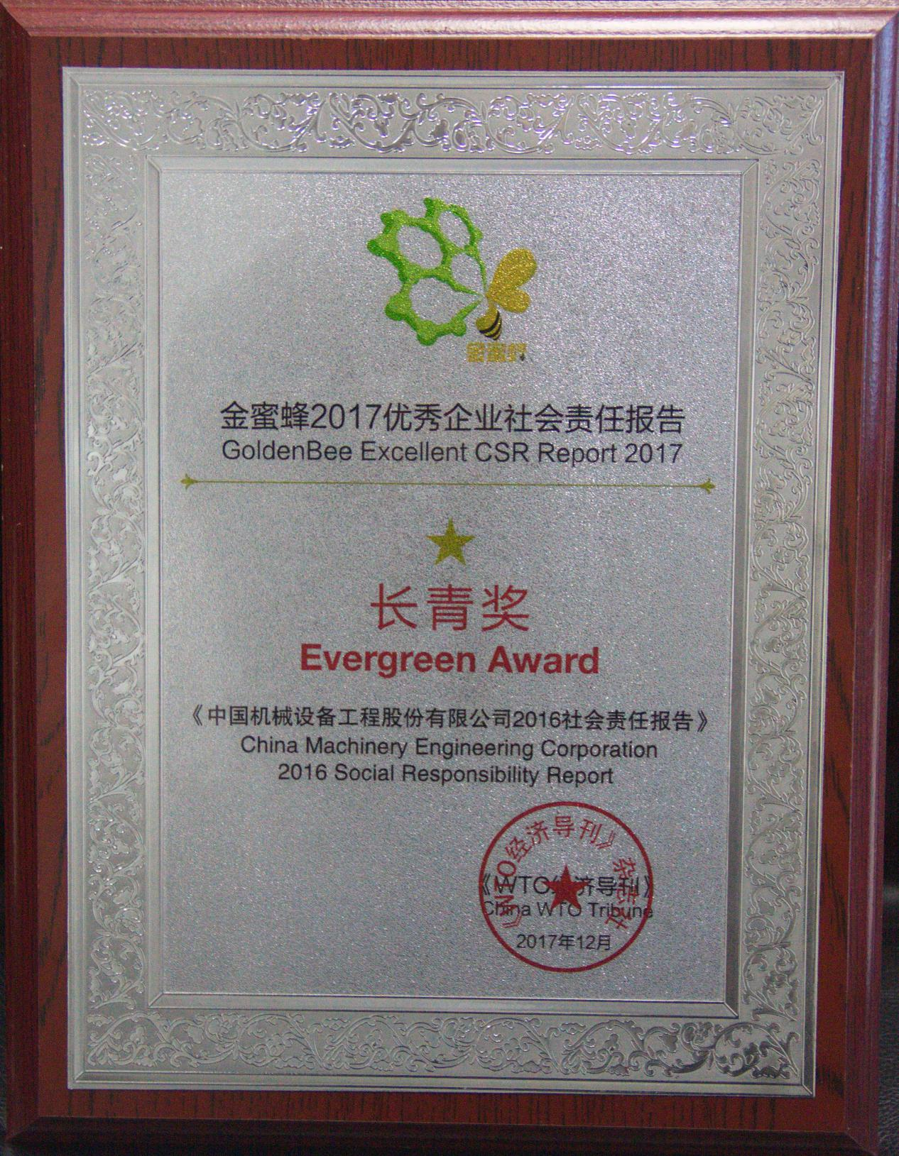 “金蜜蜂2017优秀企业社会责任报告长青奖”是金蜜蜂报告榜的最高荣誉,颁发给已连续三年获得金蜜蜂优秀企业社会责任报告奖,且本年度依然保持高水准和利益相关方普遍赞誉的报告。