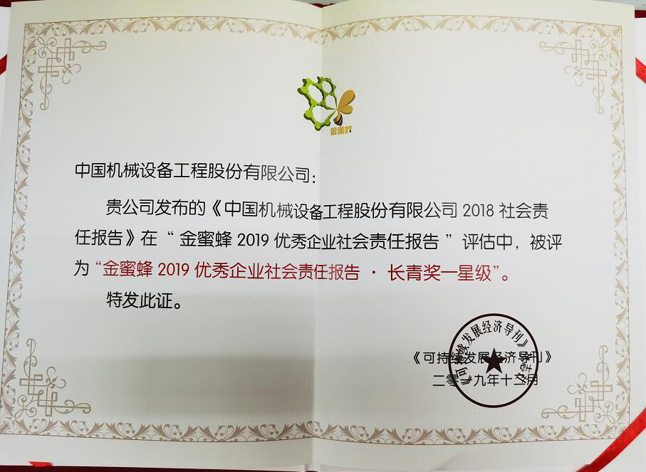 日前,CMEC发布的《2018社会责任报告》在第十二届中国企业社会责任报告国际研讨会上荣获“金蜜蜂2019优秀企业社会责任报告·长青奖一星级”。