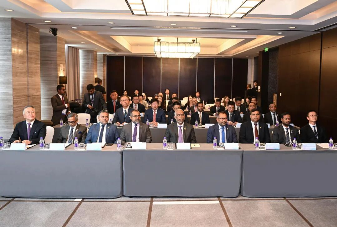 会议之前,王博董事长与中国驻马尔代夫大使孔宪华就国机工程集团及其成员企业在马尔代夫工程建设多个领域的深耕细作、不断拓展进行了交流。孔大使鼓励国机工程集团及成员企业继续发挥一流的咨询设计和工程总承包建设能力,以及国际化程度高的突出优势,通过高质量履约持续深化中马友好合作,为中马全面战略合作伙伴关系贡献新力量。