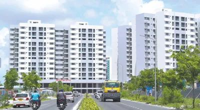 驾车从首都马累出发,驶过马尔代夫首座跨海大桥中马友谊大桥,不久便到了当地第二大岛胡鲁马累。沿着宽阔的大街前行,一排排色彩明亮的楼房赫然映入眼帘。登高远眺,十几幢白墙蓝顶的楼房,与远处蔚蓝的大海相互映衬,格外醒目;另一个粉墙红顶的楼群与其相邻,两个楼群以林木葱郁的街心花园相隔。